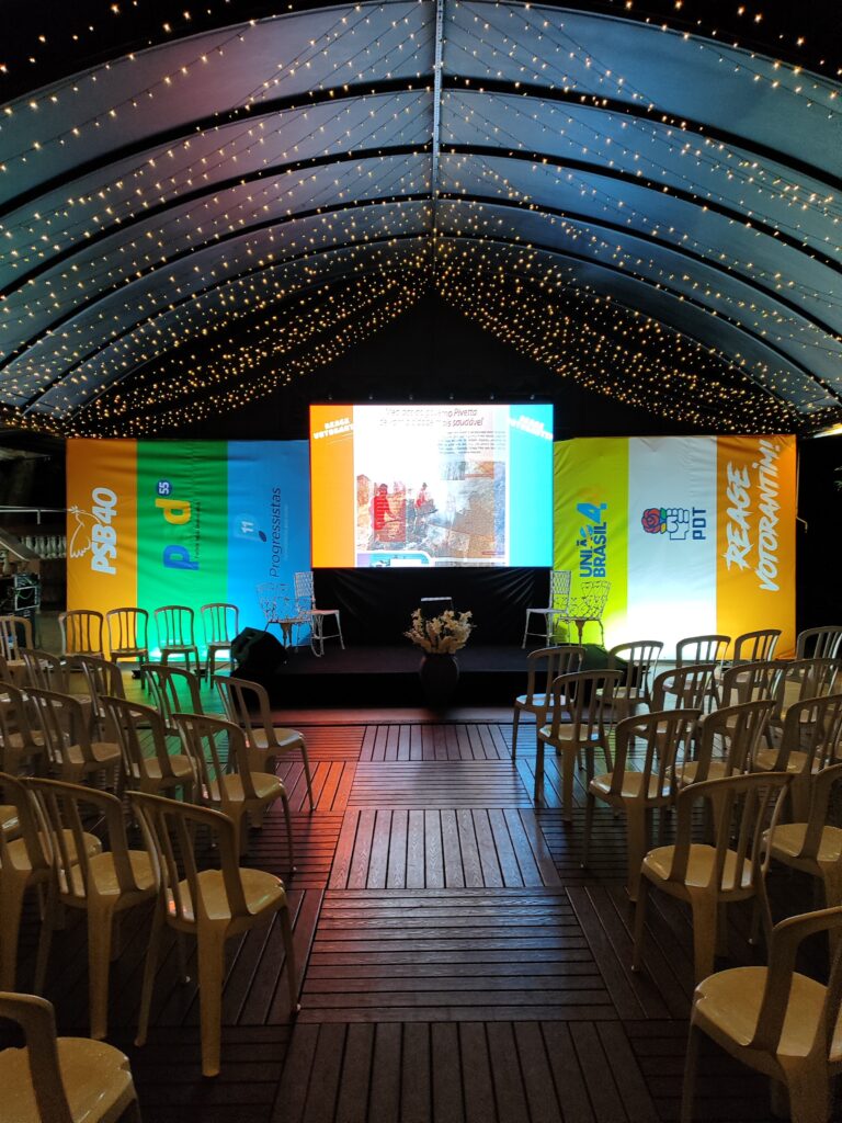 Para qualquer tipo de evento, fornecemos estrutura completa, sonorização, iluminação e projeções inovadoras, criando experiências únicas e memoráveis.
